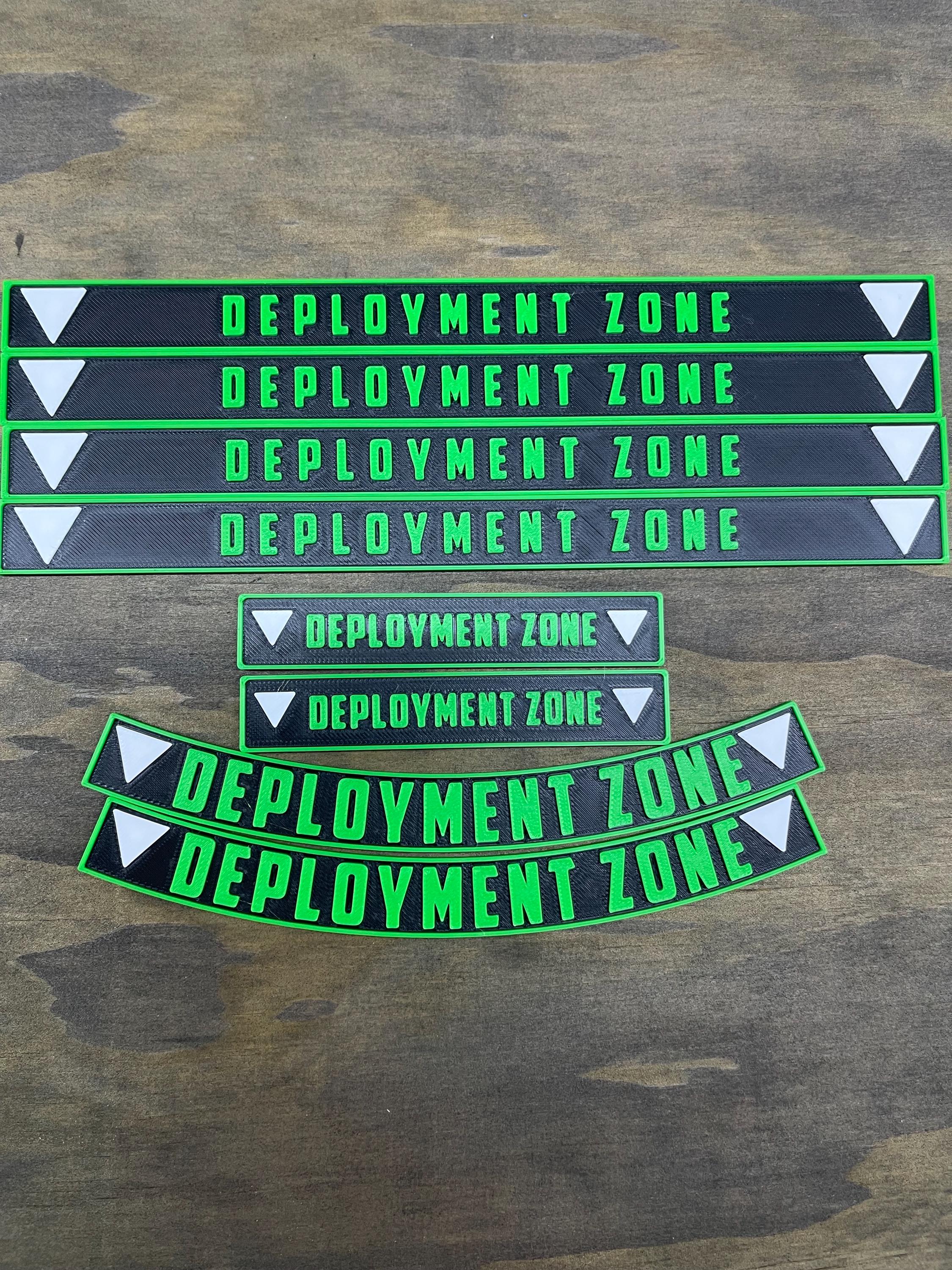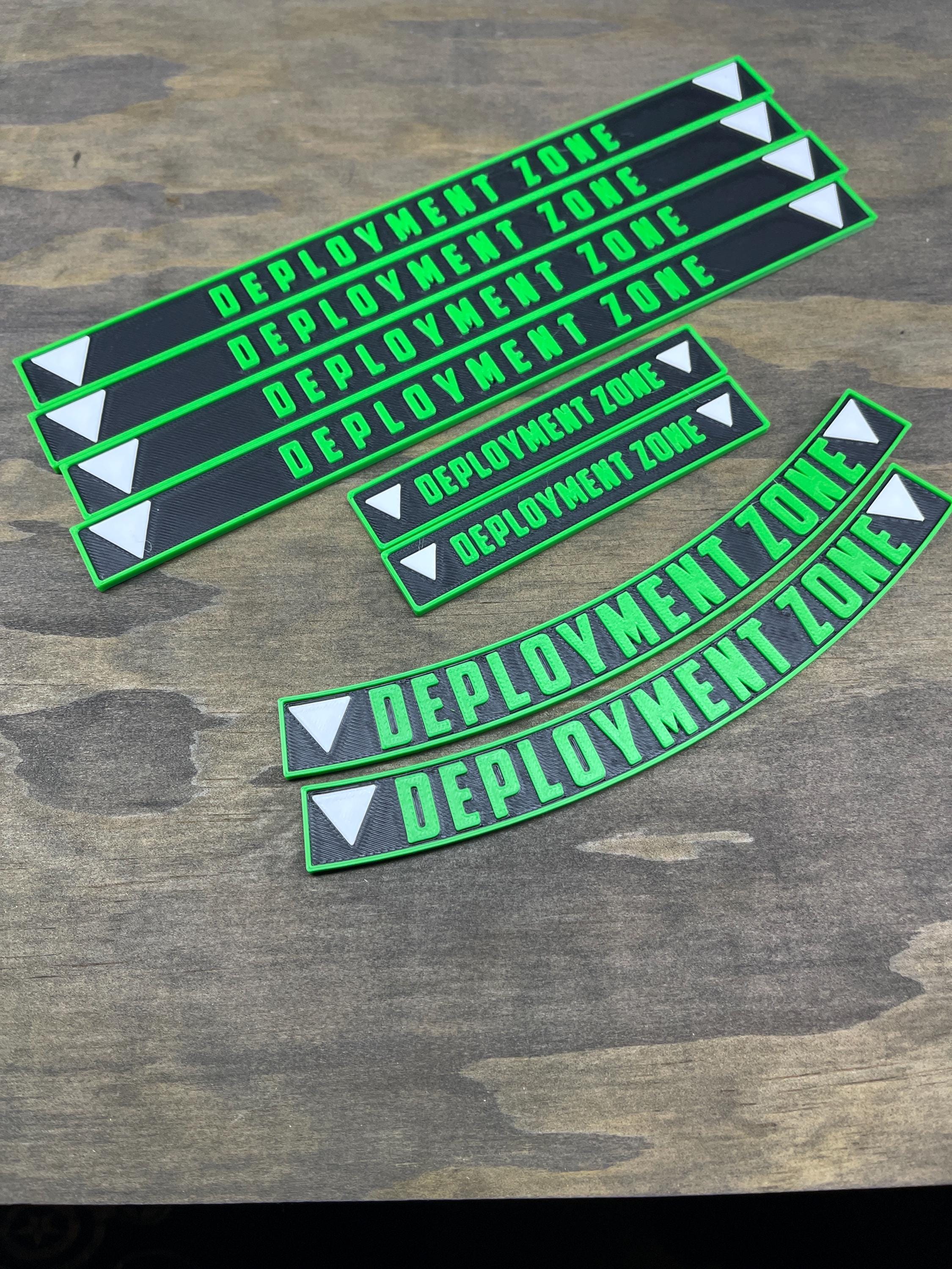 Set of deployment markers for your war gaming needs. The long marker is 9” making it great for pre measuring deep strikes and screening. The 2 curved pieces will mark 9” from the center of the battle field.