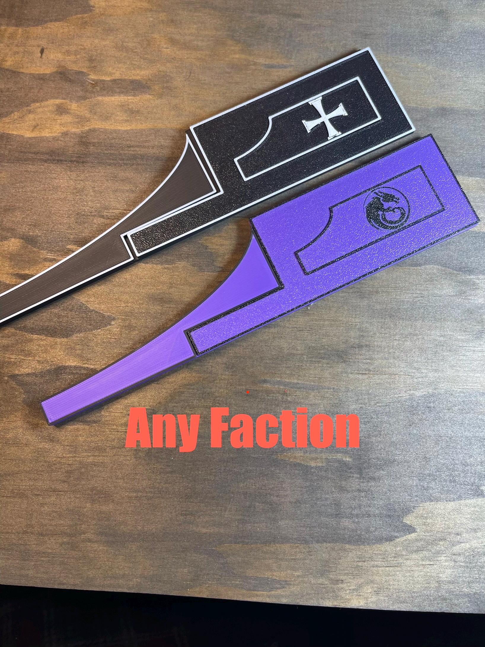 Any Army Faction! Custom combat gauge for your army. Quickly measure coherency, engagement, embarkation, disembarkation, 6” and 9” deep strikes. Shown are generic Icons. Any army faction can be added to your gauge.